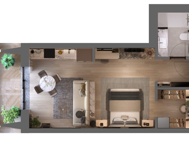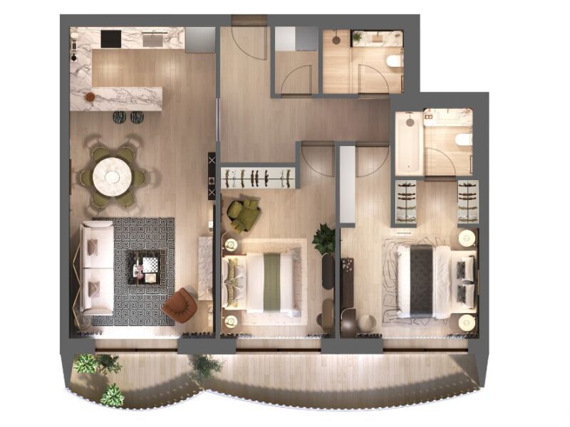 The strength of each apartment lies in its thoughtful design features: abundant natural light energises every space, soaring high ceilings enhance openness, and ensuite bedrooms provide privacy and luxury.